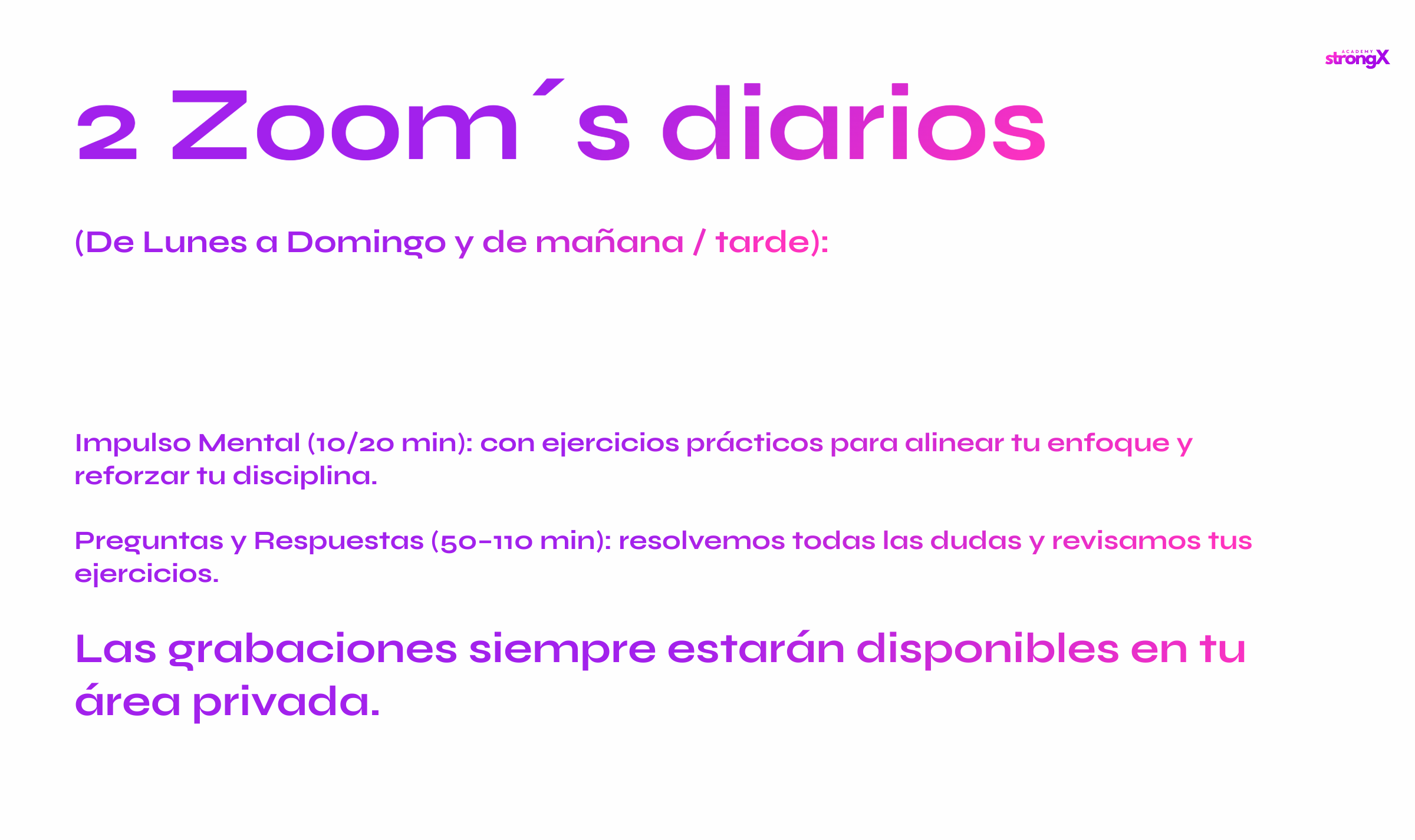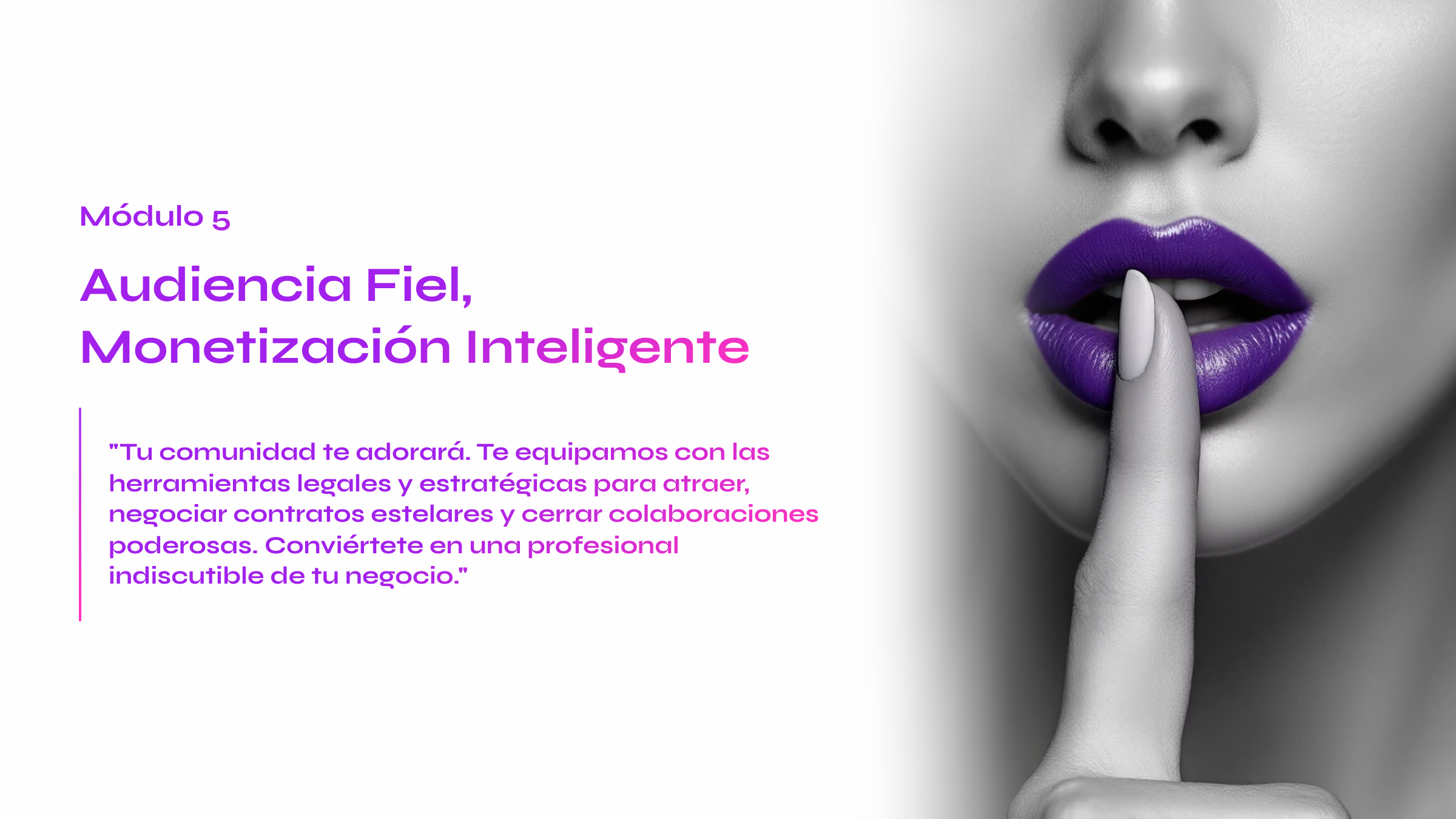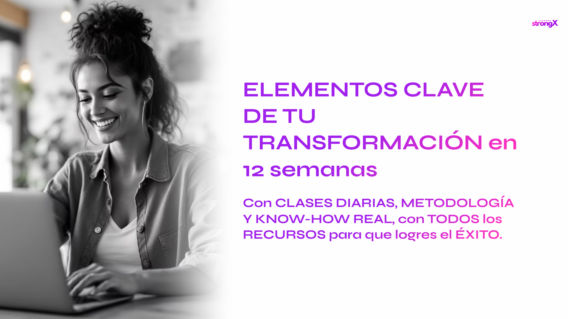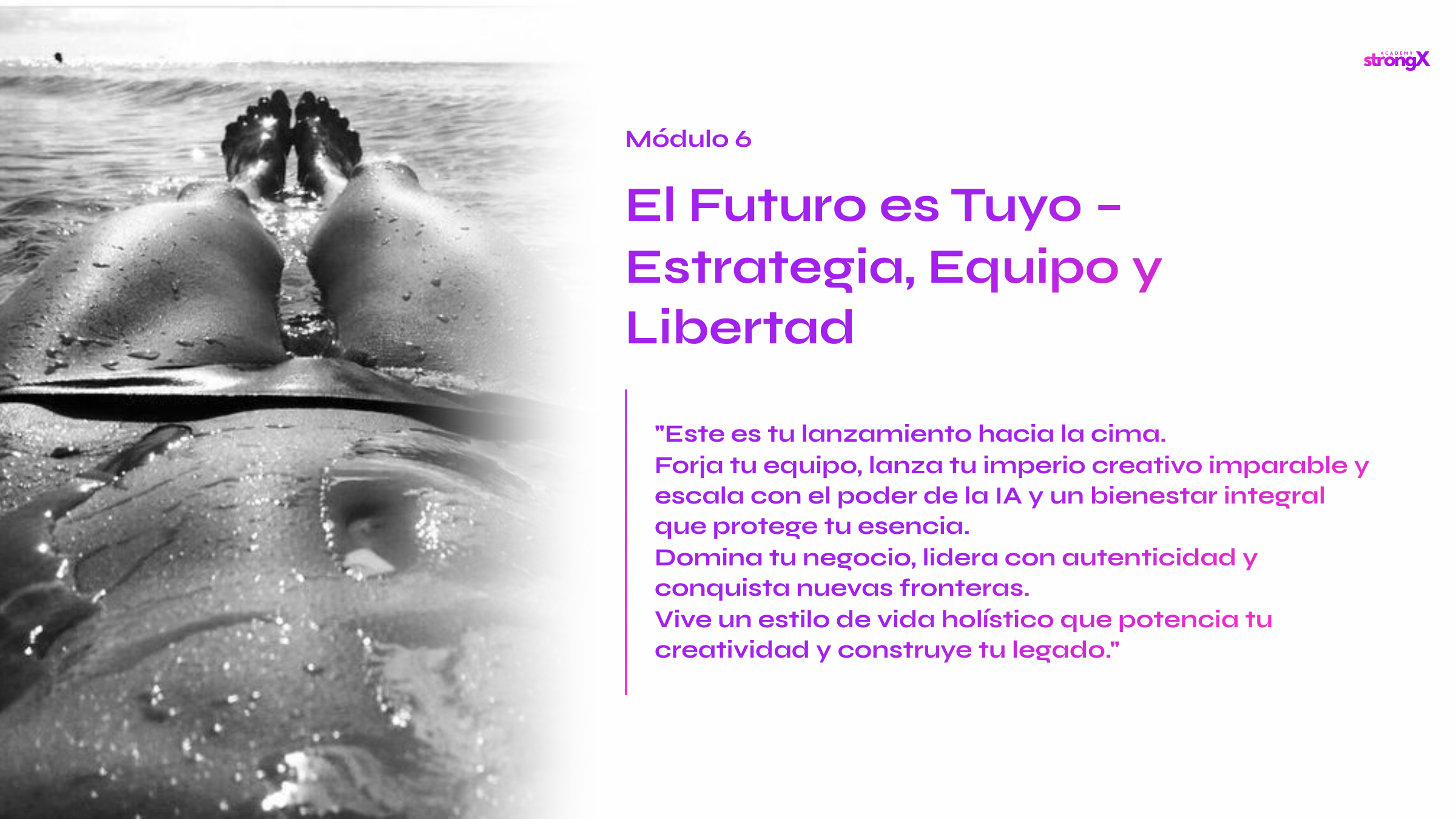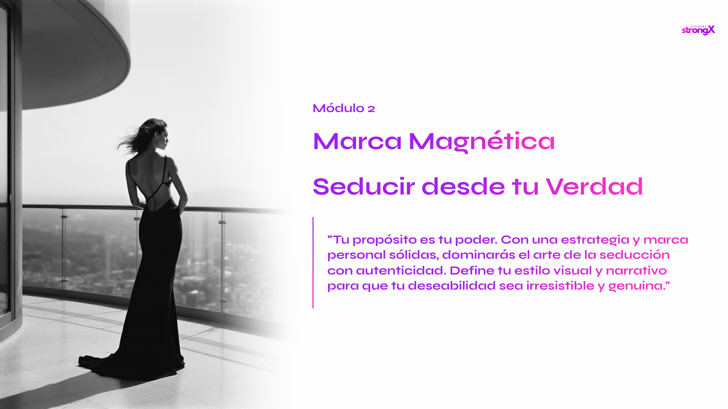 Con este formato, la agencia StrongX te acompaña como mentor: mentalidad sólida, técnica de cine erótico y estrategias de venta elegante para enamorar, seducir y convertir a tu audiencia en una gran comunidad.